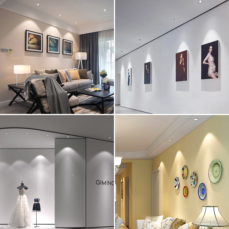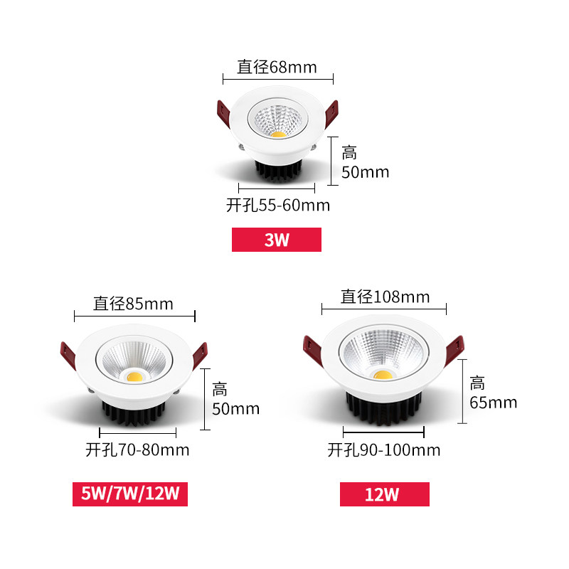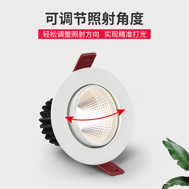 White spot light LED ceiling light Embedded 5 5 6cm drilling 75 household 3w12w three-color dimming downlight cob