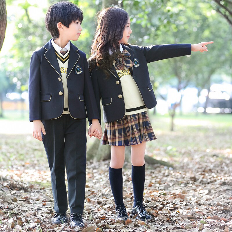Kindergarten costume suit three-piece set of primary and secondary school uniforms British style class uniform Primary school uniform spring and autumn set