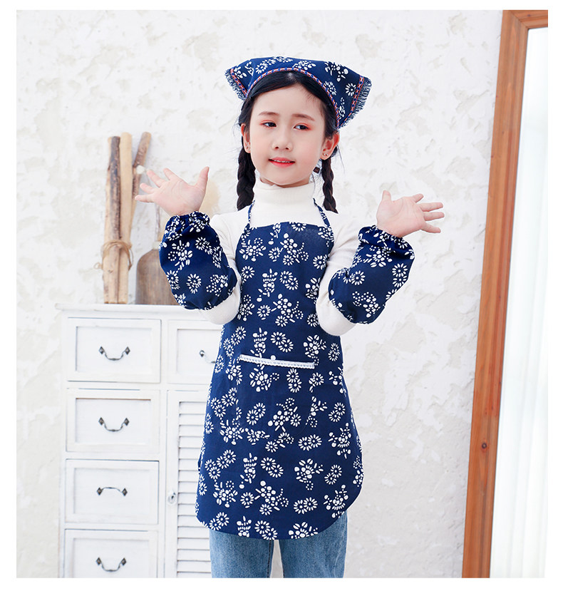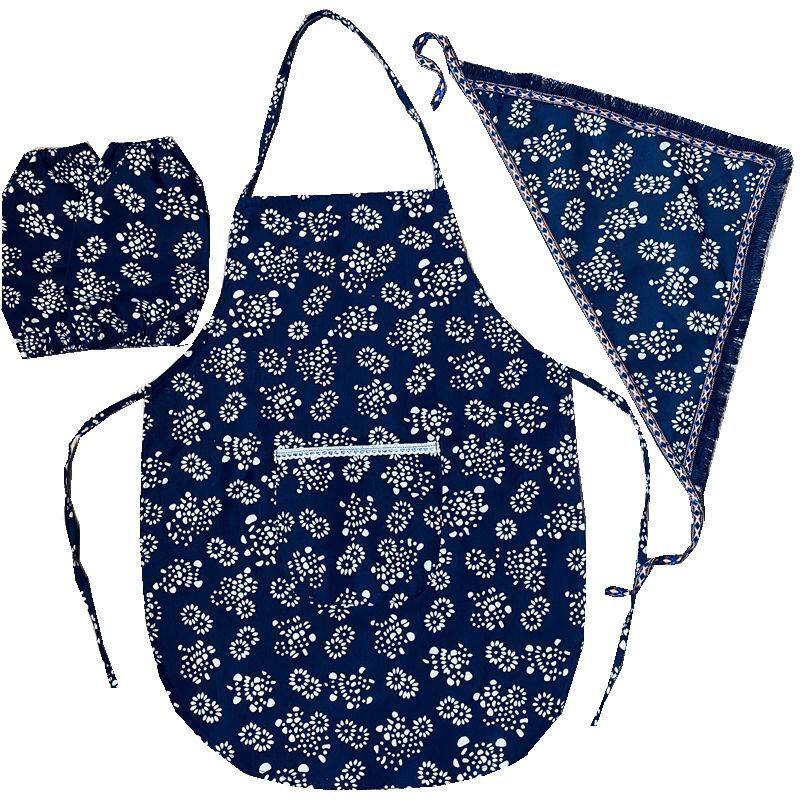 (Blue Broken Flowers) Adult Apron (Blue Crumbs) Adult Apron Turban (Blue Broken Flowers) Adult Cuff (Blue Crumbs) Children Apron (Blue Crumbs) Children Apron (Blue Crumbs) Children Apron Headscarf (Blue Crumbs) Children