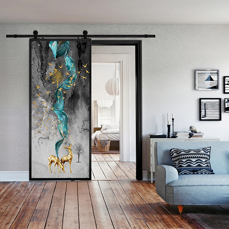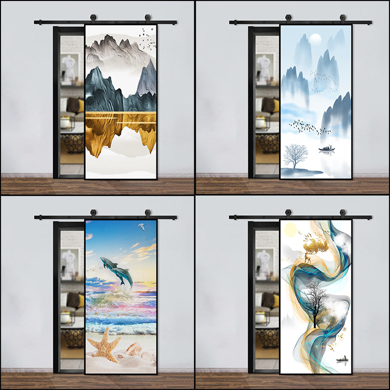 Powder room barn indoor solid wood paint kitchen living room push-pull custom bookshelf color carving sliding door wooden door invisible door