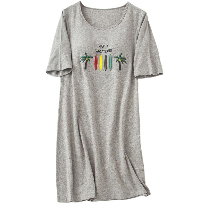 Pure cotton with chest pad short-sleeved pajamas nightdress women's printing no steel ring bra one-piece slim mid-length skirt home service summer
