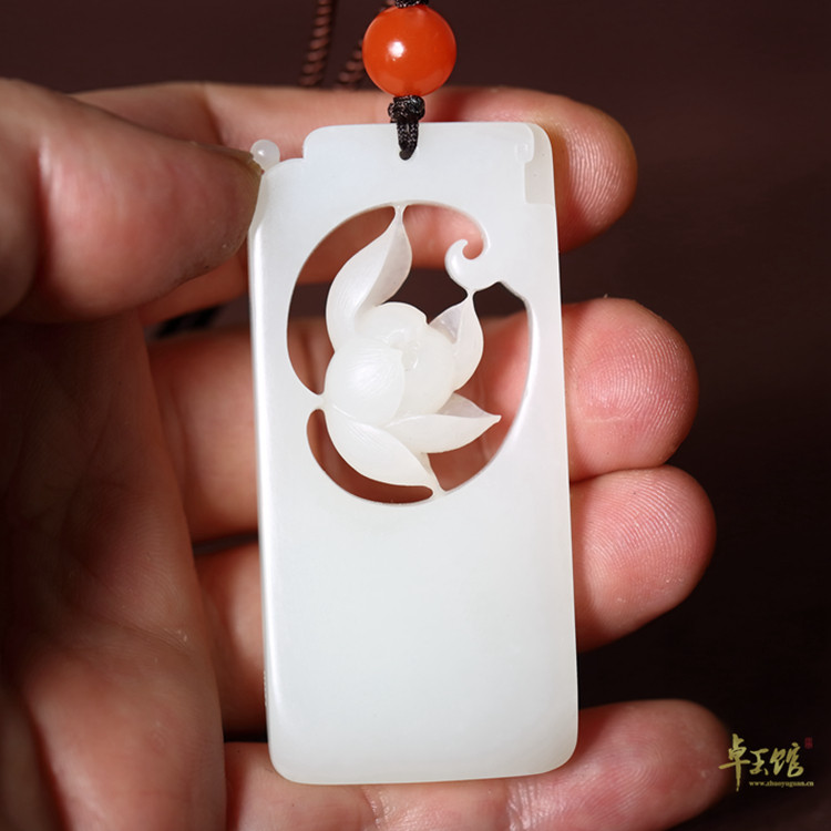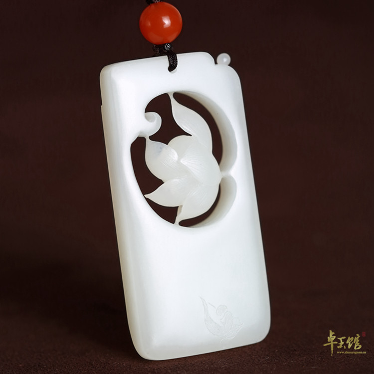 (Zhuoyu Pavilion) Qingho Yayun Xinjiang and Tian Yuseed Grease White Lotus Pendant Square Card Yang Xi works