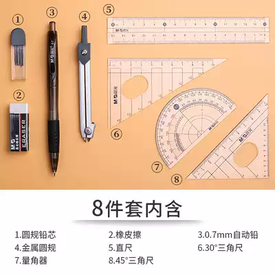 Morning light compasses ruler set junior high school students with multi-functional cute drawing tools with garden ruler ruler to do drawing professional mechanical drawing examination special supporting ruler clamp stationery
