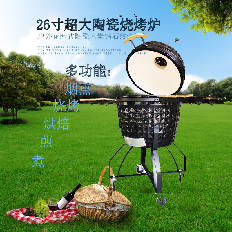 AUPLEX Aples Ceramic Grill 26 Inch Diamond Pattern European and American Outdoor BBQ Pizza Stove Charcoal Smoke