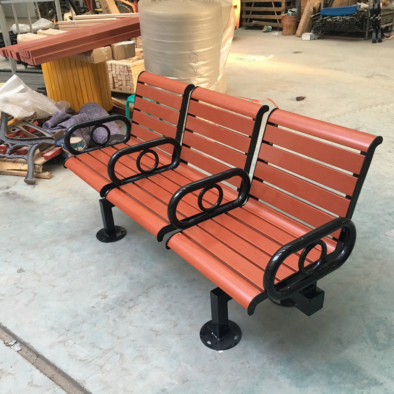 Park chair outdoor bench bench courtyard garden bench plastic wood bench row chair steel pipe welded three-person seat
