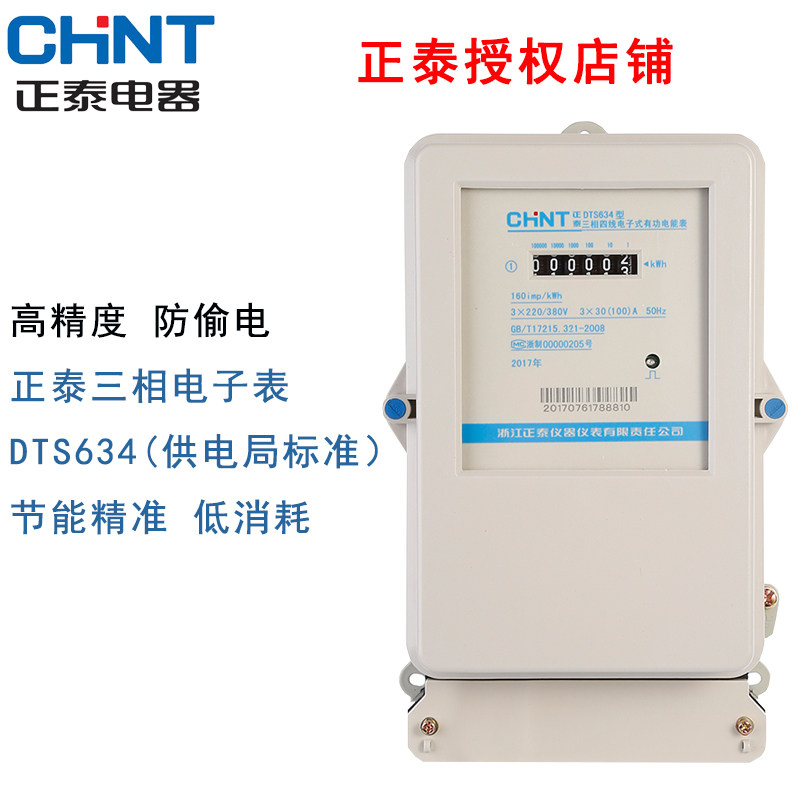 Zhengtai three-phase four-wire electric meter DTS634 electronic transformer electric energy meter 380V volt meter fire meter three electric