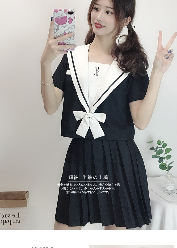 Black Short Sleeve Dress Collar Black Midsock Black Long Sleeve Skirt Collar Knots Black Midsocks Short Sleeve Single Piece Long Sleeve Single Piece Gray Cardiovert