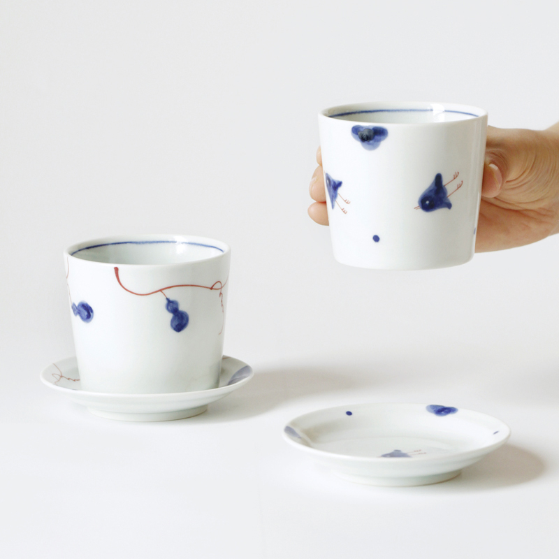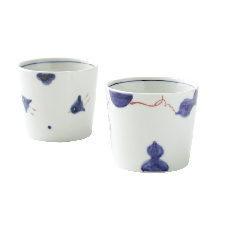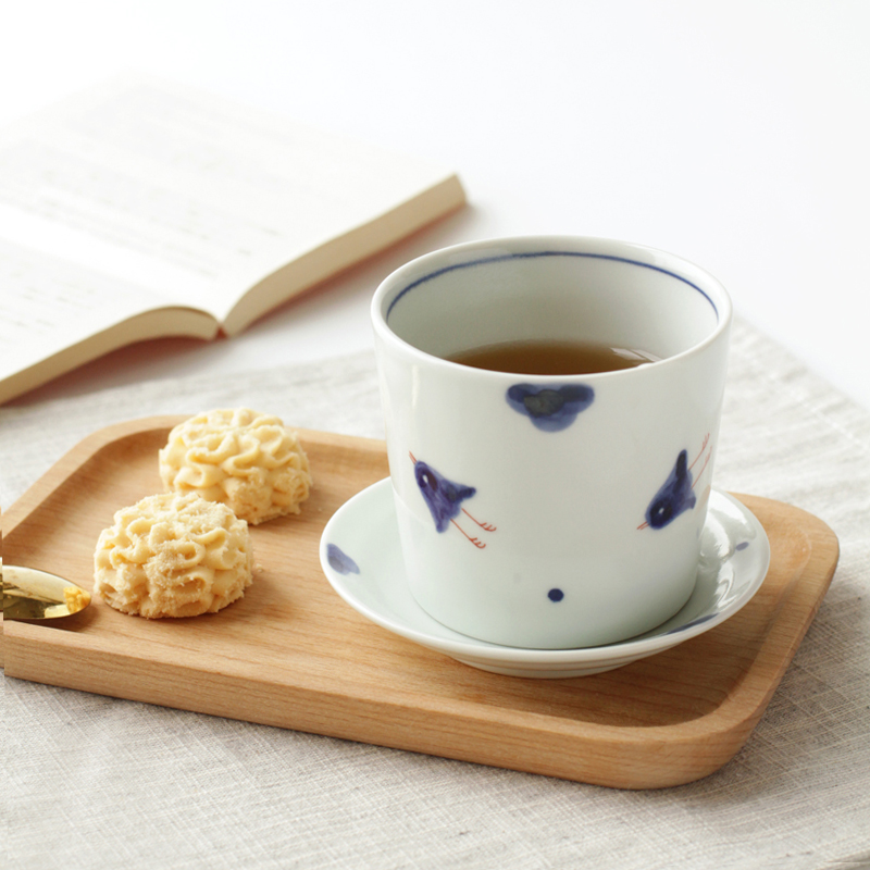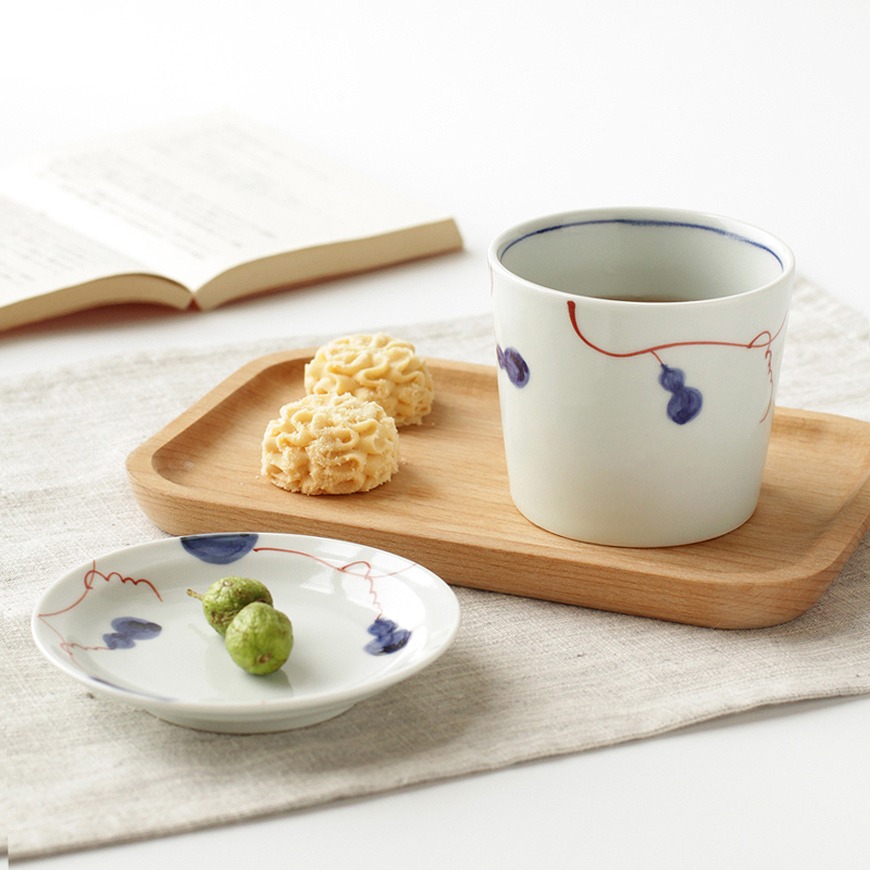 Japan original imported Arita-yaki hand-painted bird gourd series wide mouth cup Japanese tea cup tea tray plate