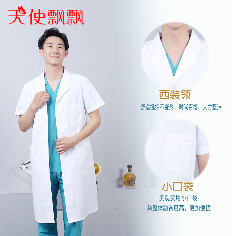 White Coat with short sleeves Long sleeves Men and women Physician Wear White Spring Autumn Season Drugstore Doctor Wei School Nurse Service Work Beauty