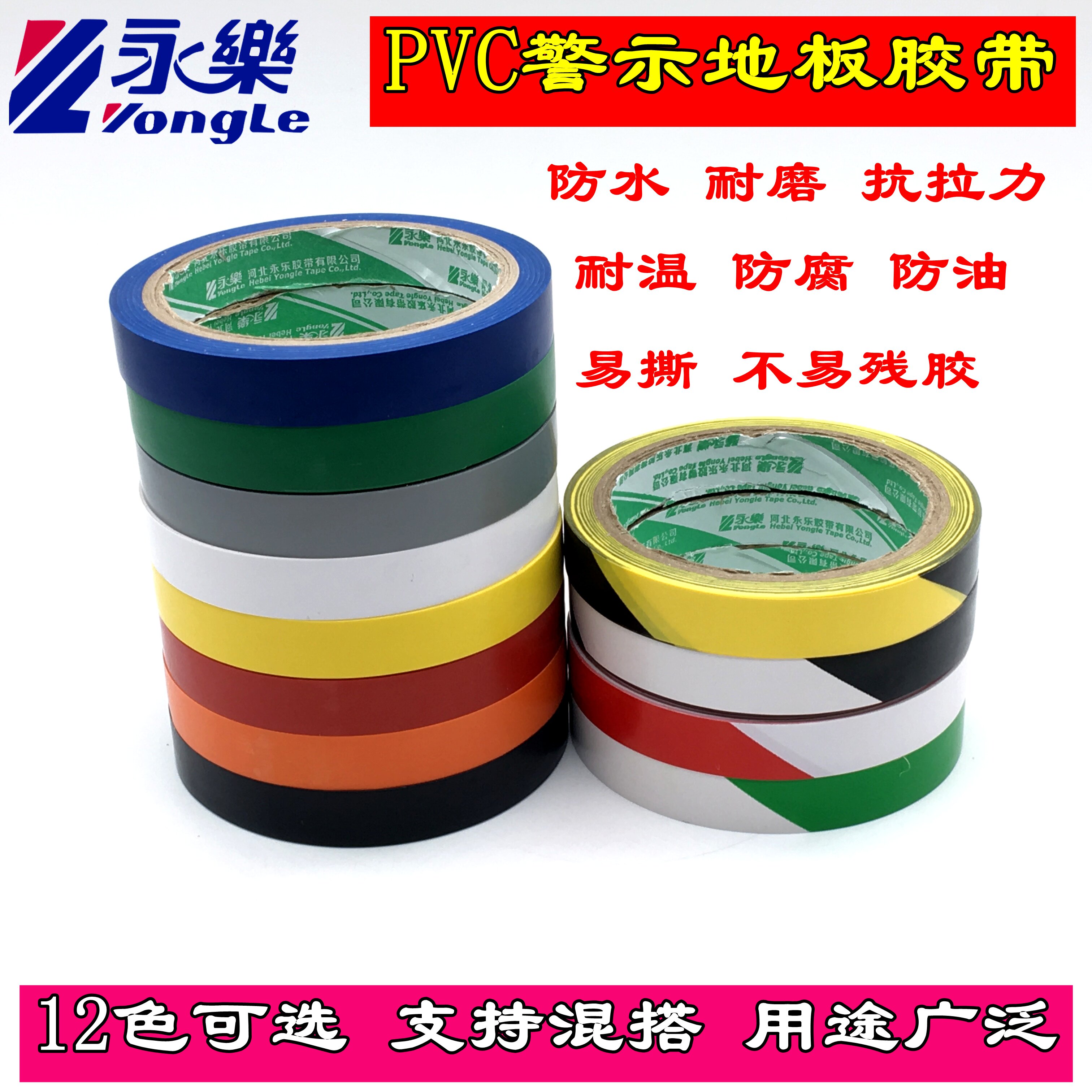 Yongle PVC warning tape width 1 5CM waterproof warning high sticky floor logo 5S positioning scribing black yellow