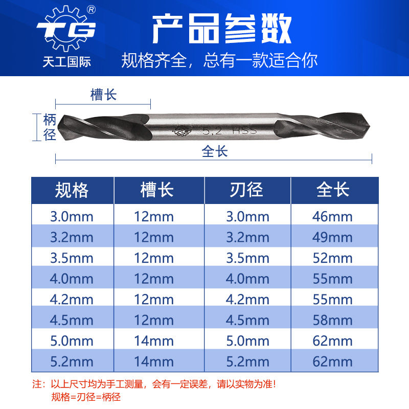 Tiangong double-headed high-speed mesh straight handle twist drill 4 2mm double-edged stainless steel iron aluminum drill flower electric drill rotor