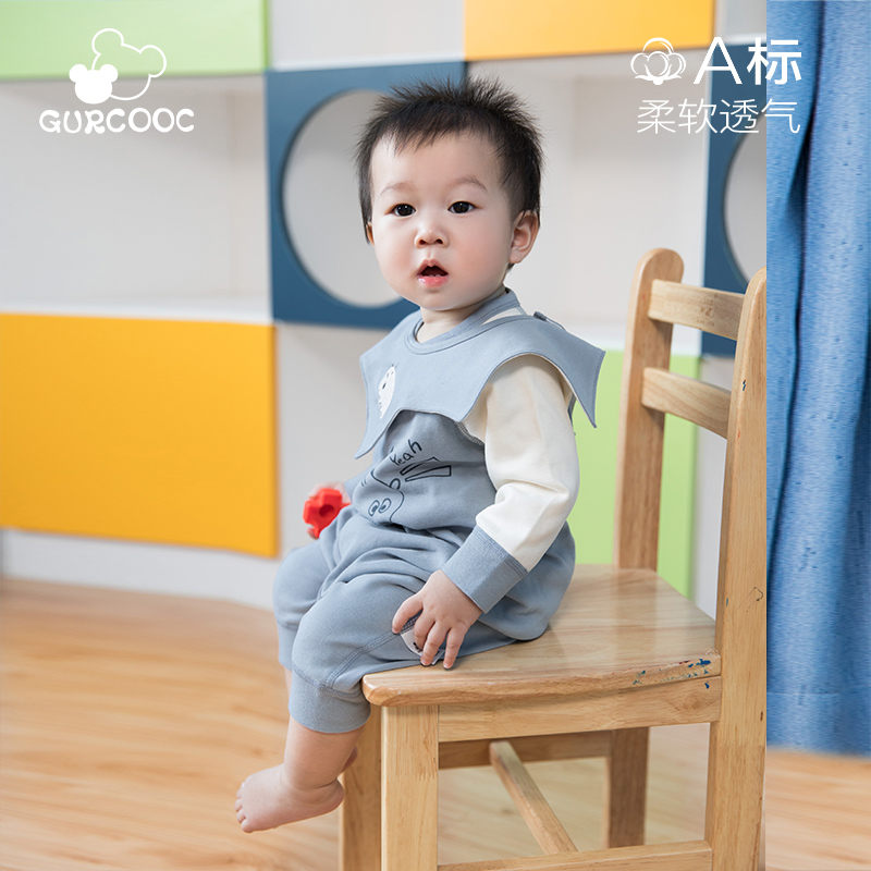 Newborn 0-3-6 months long-sleeved monk clothes Spring and Autumn baby jumpsuit Men and women baby strap cotton jumpsuit