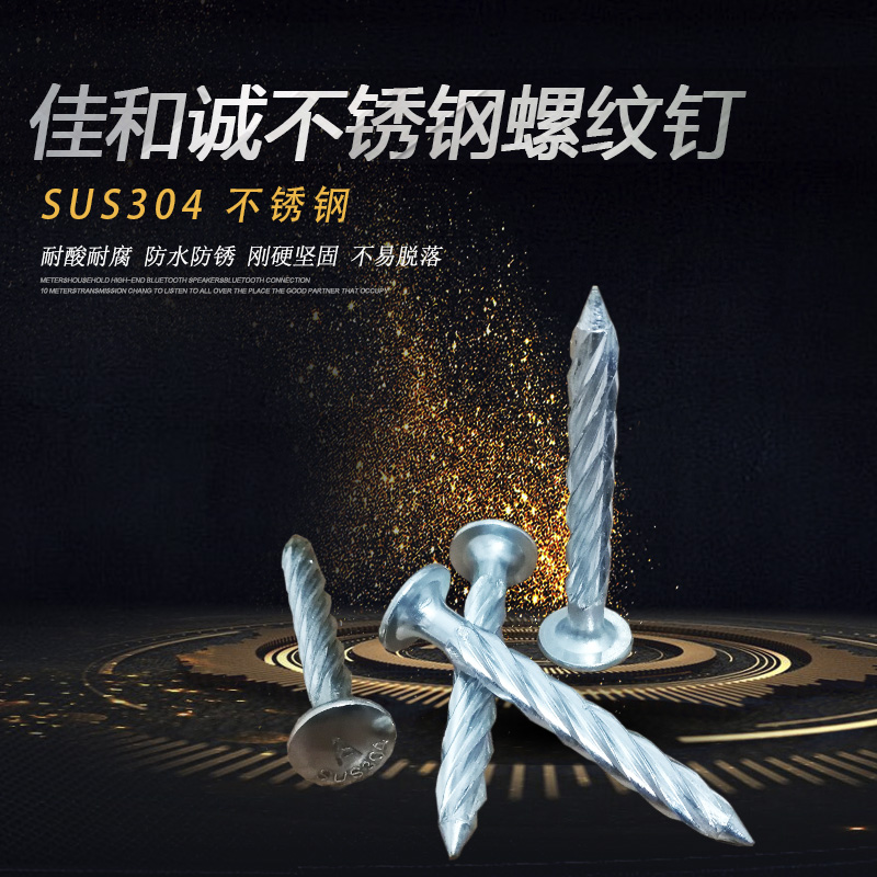 304 stainless steel threaded nail new round head wall nail special steel nail burglar-proof net spiral nail high-strength cement nail