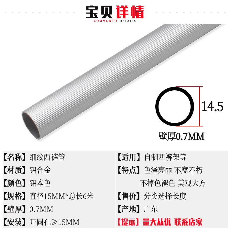 Custom 15MM fine grain pants rack cabinet panty rack Aluminum color pants tube special hanging pants tube wardrobe hanging pants