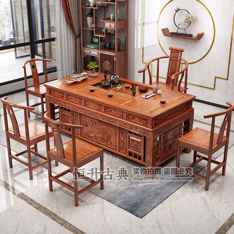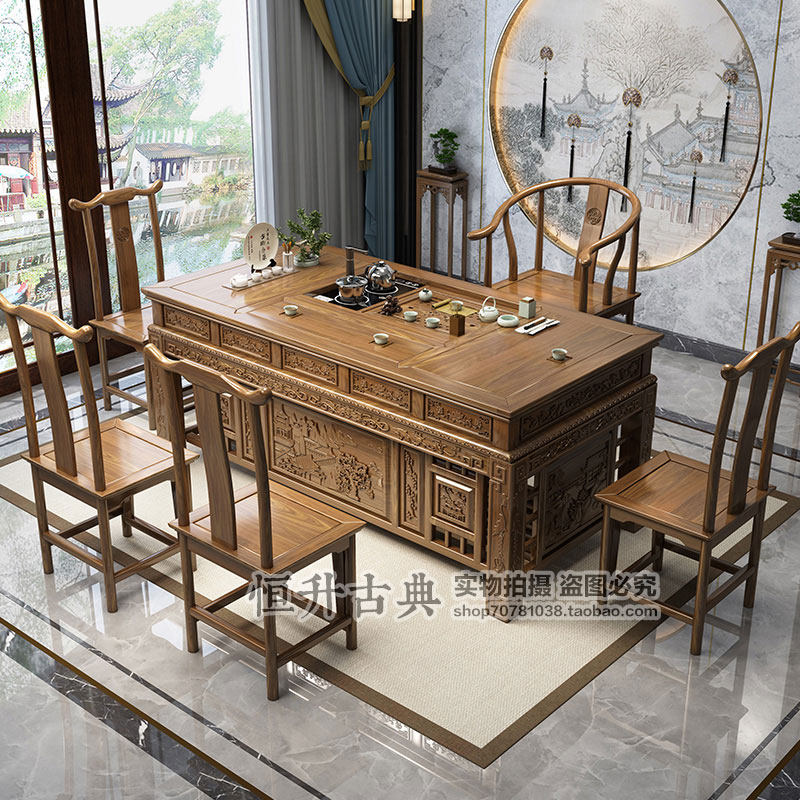 Solid wood tea table and chair combination set New Chinese kung fu tea set brewing table coffee table office integrated 1.8 meters