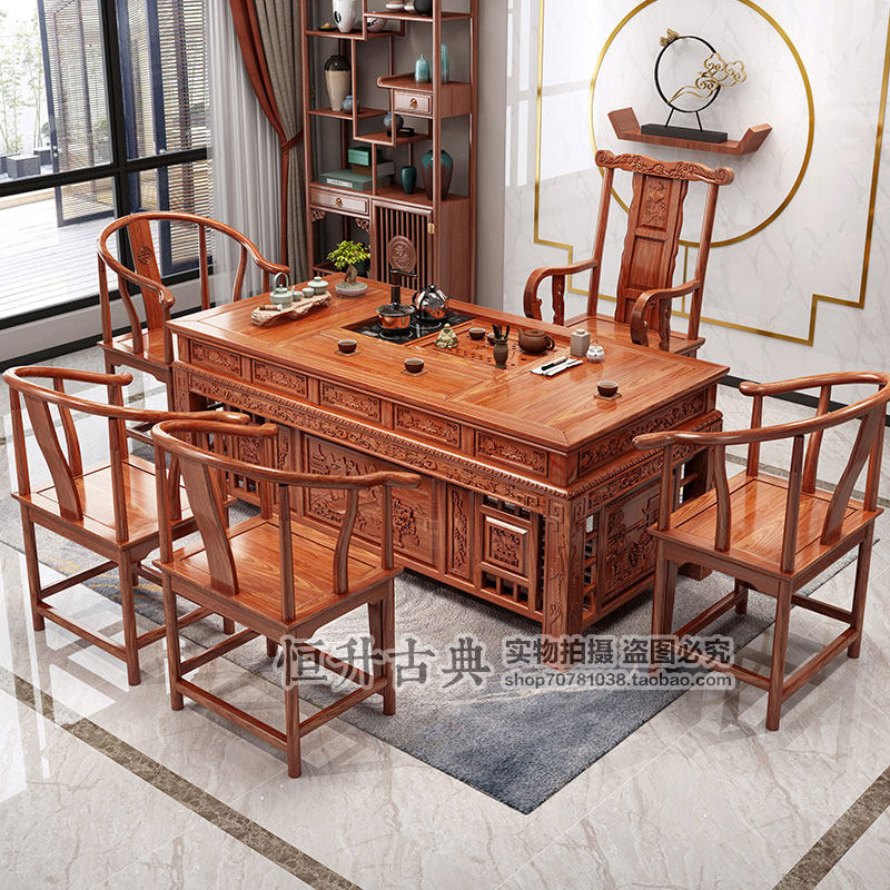 Deluxe Edition 1 circle chair 4 half moon chair Big stone tea plate - rosewood color