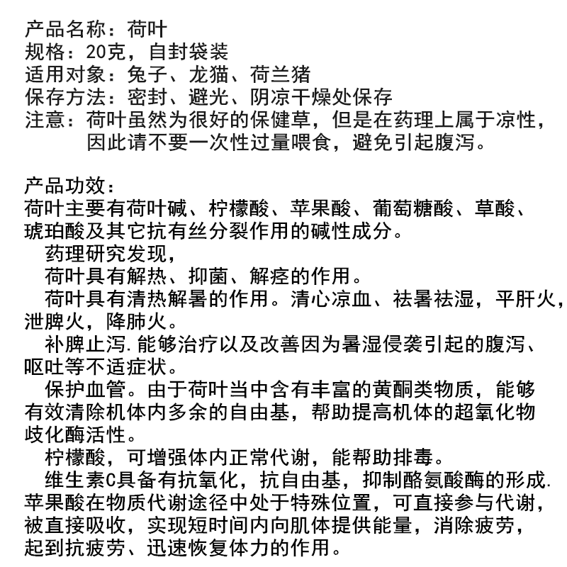 Lotus leaf dry heat and heat stroke supplement spleen stop laxative urine through rabbit dragon cat Dutch pig snacking grass health care type grass