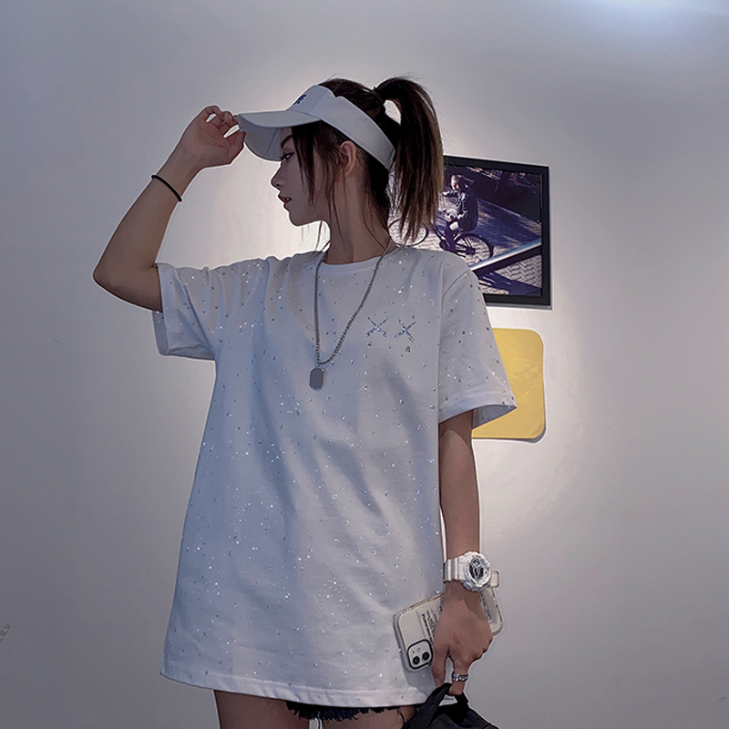 Short-sleeved men's 2022 summer new star print national tide casual all-match couple wear white T-shirt top