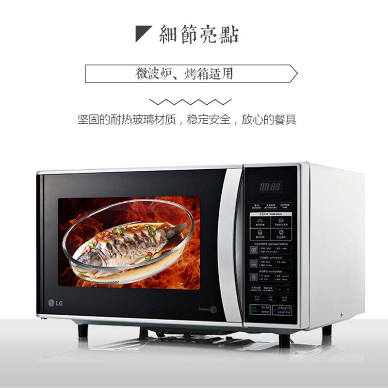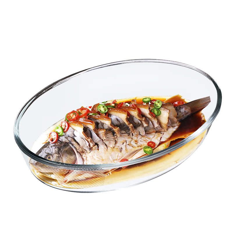 Heat-resistant transparent glass fish plate Household large fish plate Steamed fish creative plate Microwave oven baking plate tableware