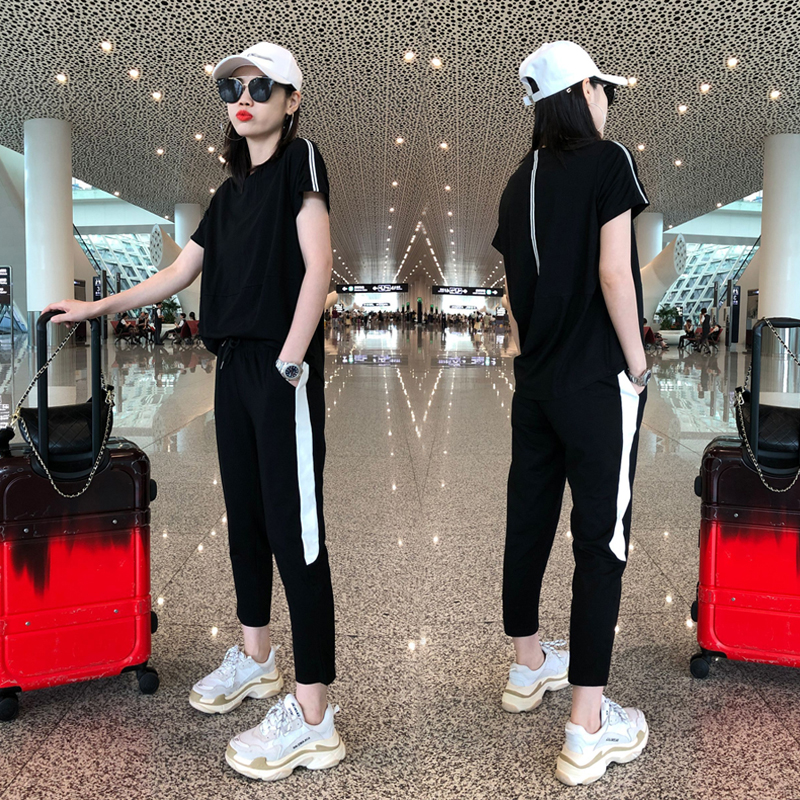 European station short-sleeved sports suit women's summer 2022 new European goods trendy fashion foreign style nine-point pants casual two-piece suit