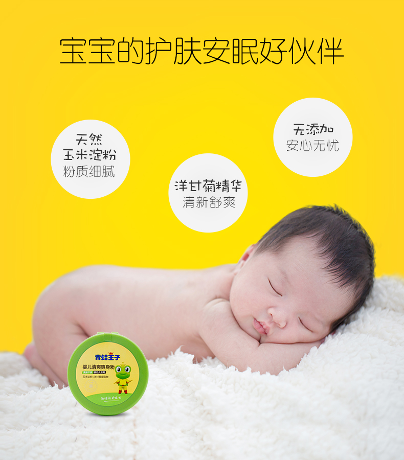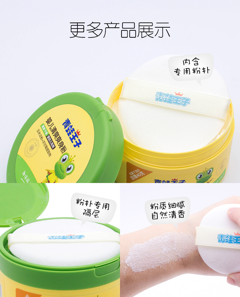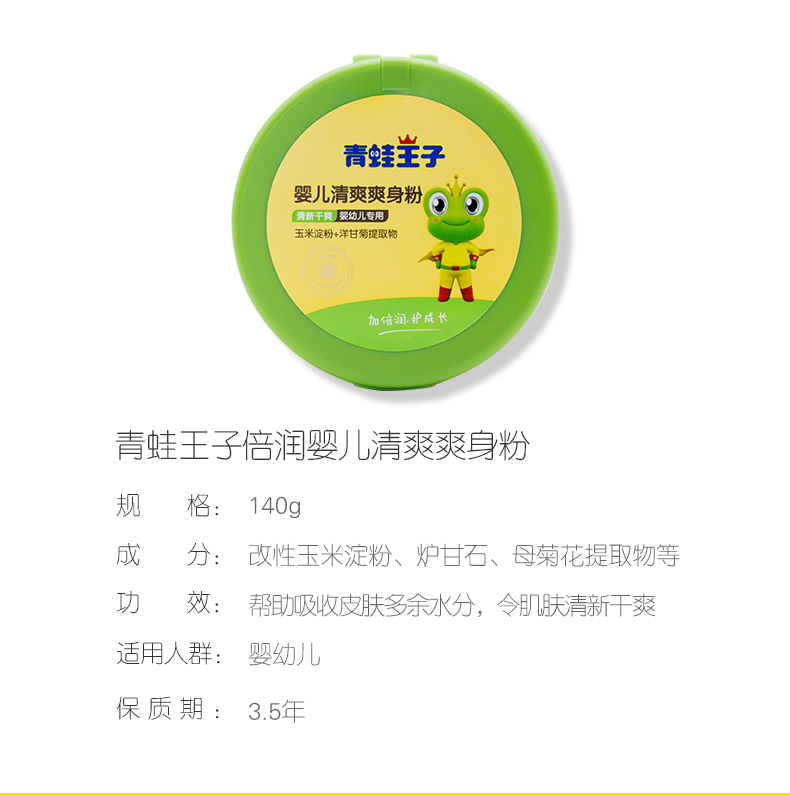 Frog Prince baby natural camellia oil multi-effect talcum powder 140g corn flour newborn children prickly heat powder