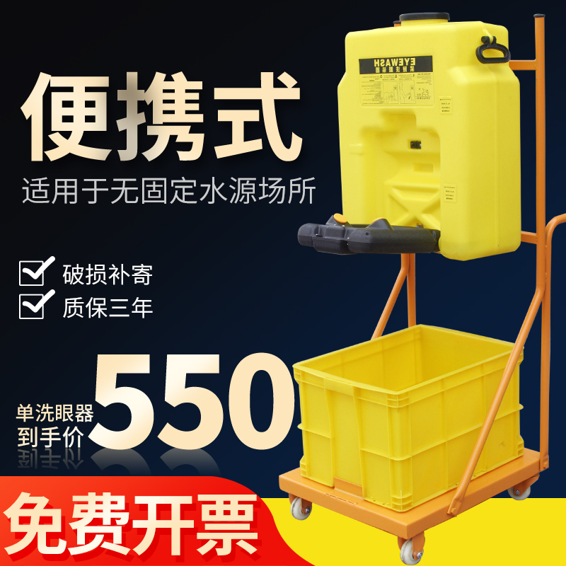 53L mobile eyewash portable emergency wall hanging laboratory trolley plastic eye punching machine device double mouth