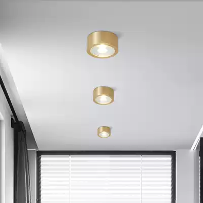 All copper surface mounted downlight LED ceiling light Ultra-thin round embedded small ceiling spotlight Nordic aisle entrance light