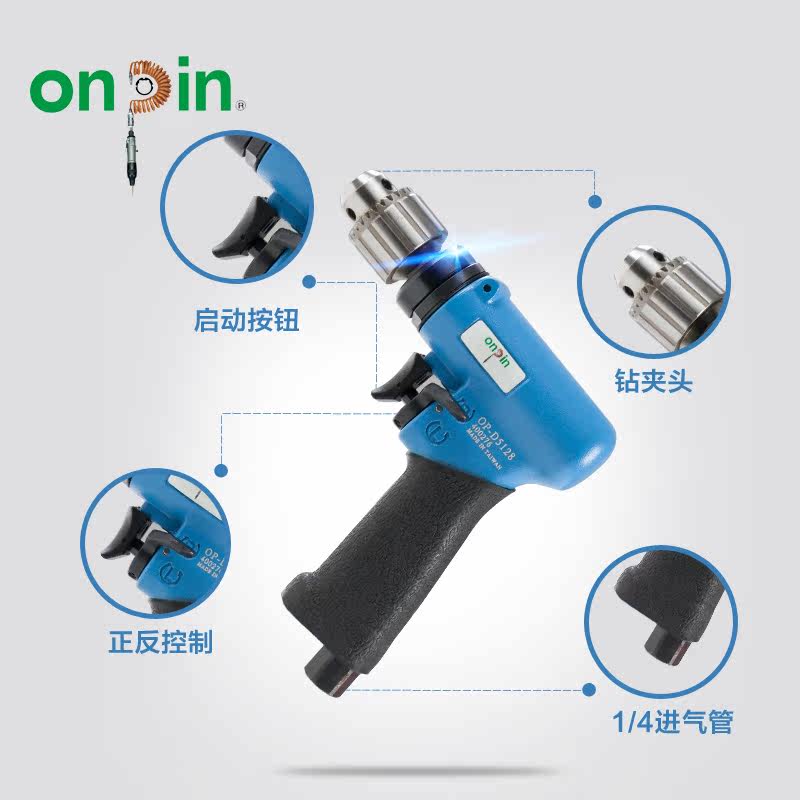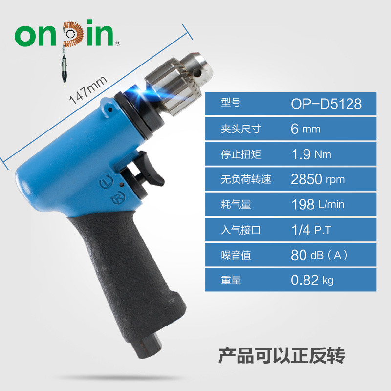 Taiwan Hongbin Pneumatic drilling gun type pneumatic drilling and drilling small wind drilling machine OP-D5128 industrial grade pneumatic tools