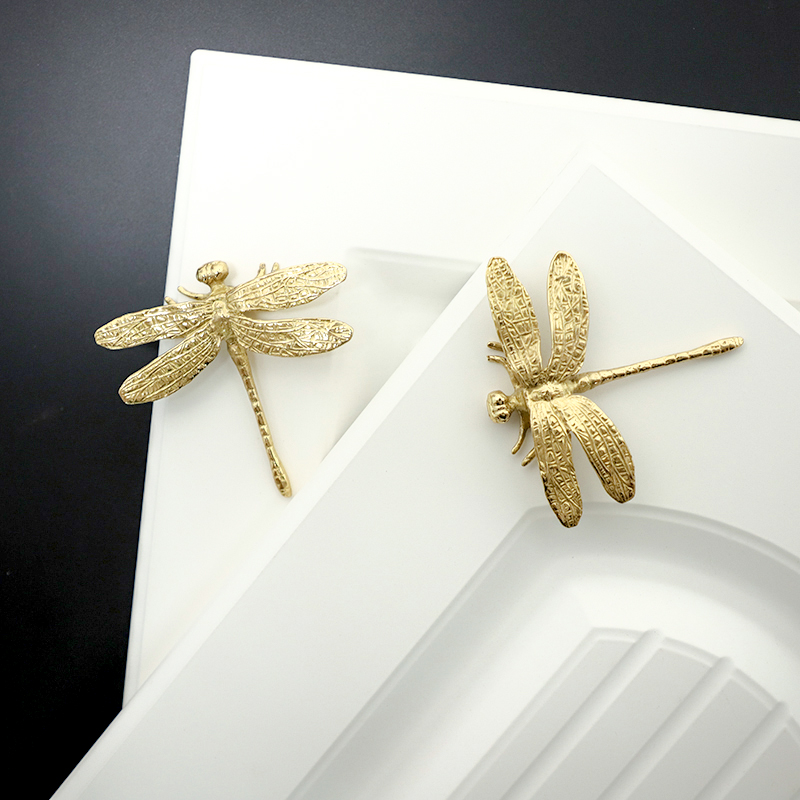 Nordic Brass Handle Creative Wardrobe Door Subdecoration Handle Light Lavish Gold Animal Series Pure Bronze Dragonfly Butterfly