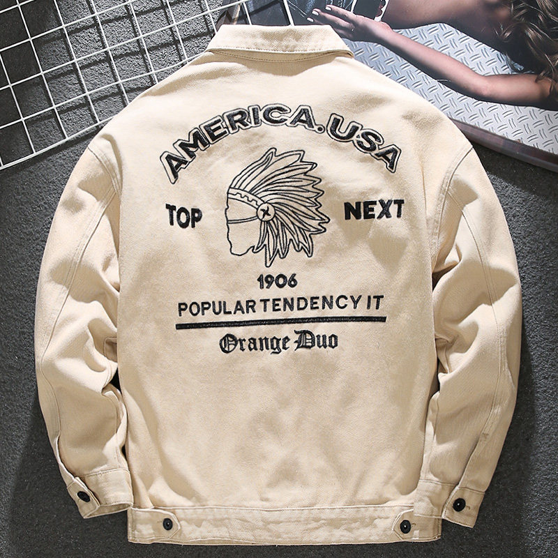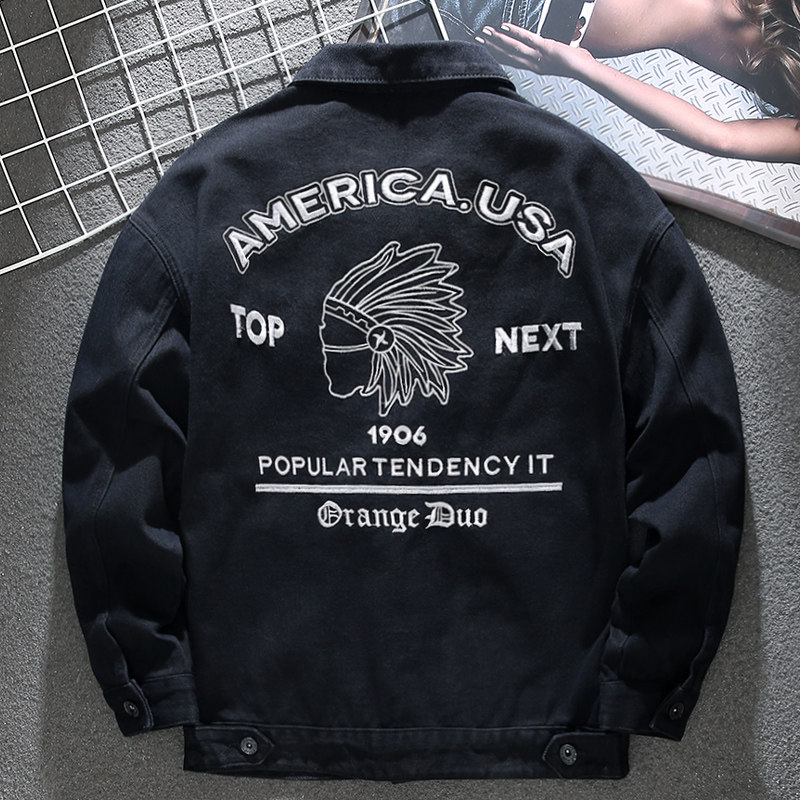 Handsome Gas Country Tide Original Embroidery China Wind Denim Jacket Male Trend Card Han Version Sashimi Jacket Spring And Autumn Denim-Taobao