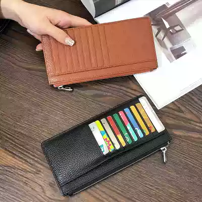 Men's wallet long zipper leather clutch multi-function driver's license card bag integrated women's multi-card holder card holder