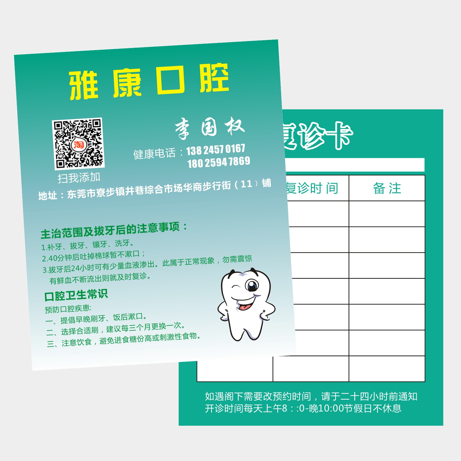 Hospital Oral set for children visit Pre-cards Folio Business Card Teeth Experience Outpatient Medical History Record Card Print
