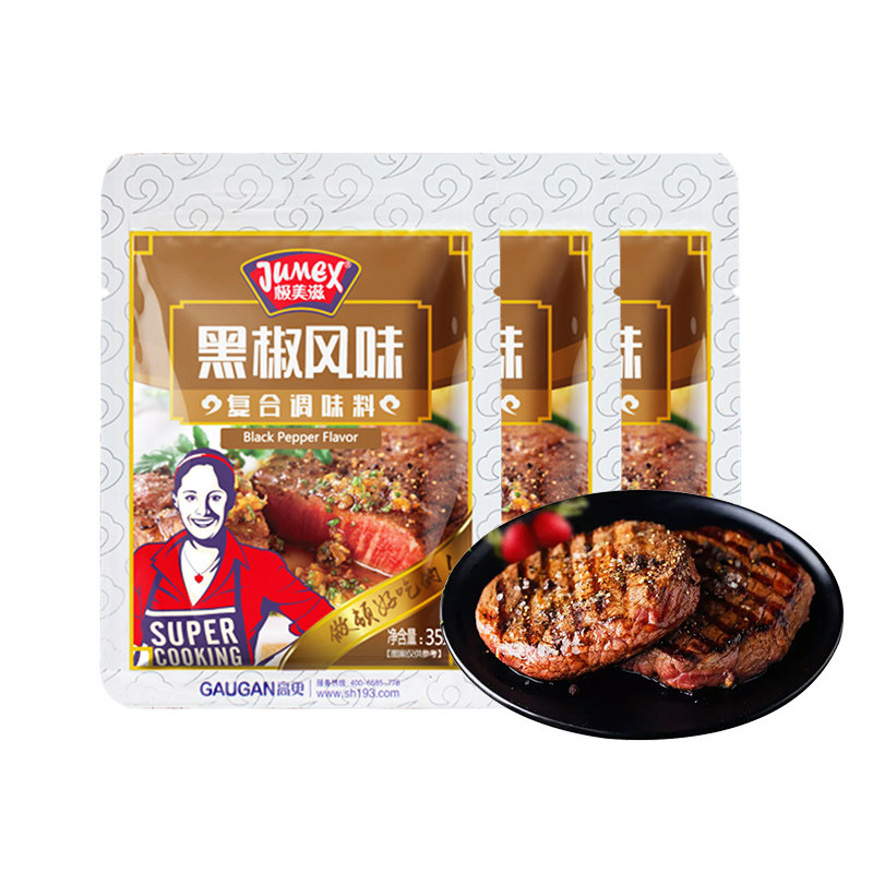 Extremely Magnificent Black Pepper Flavor Composite Seasoning Black Pepper Steak Pork Steak Marinade Fried Chicken Steak Flavoring Powder 35g * 3 Bags