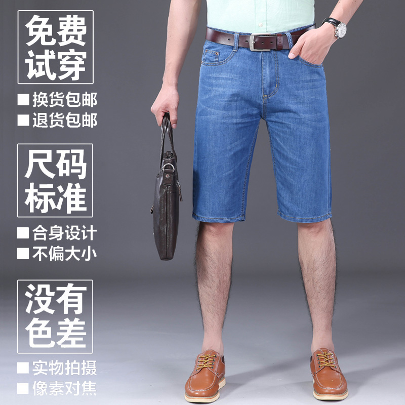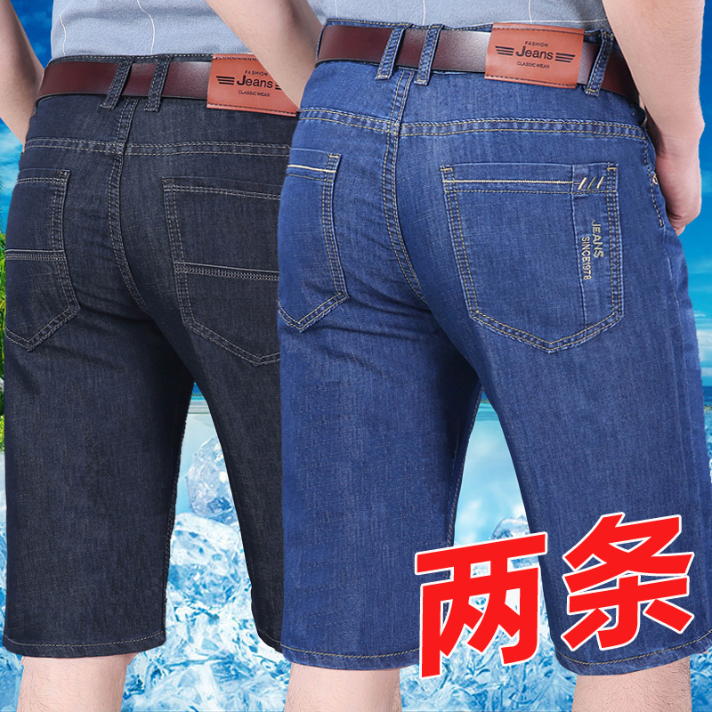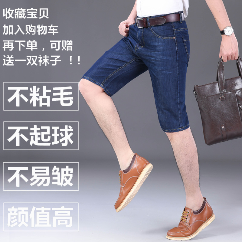 Seven - point men jeans men's loose straight summer thin 5 57 minutes leisure trousers stretch pants male tide