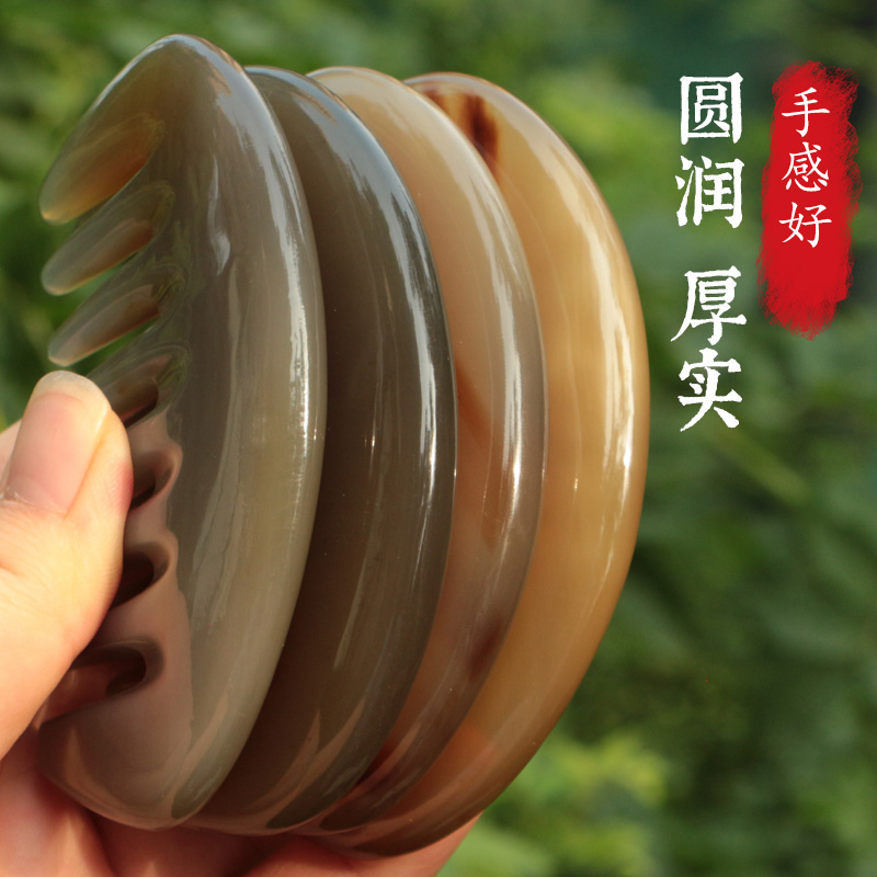 Natural white horn head massage comb Dredge meridians Grab scalp thick teeth Portable comb Facial scraping massage plate