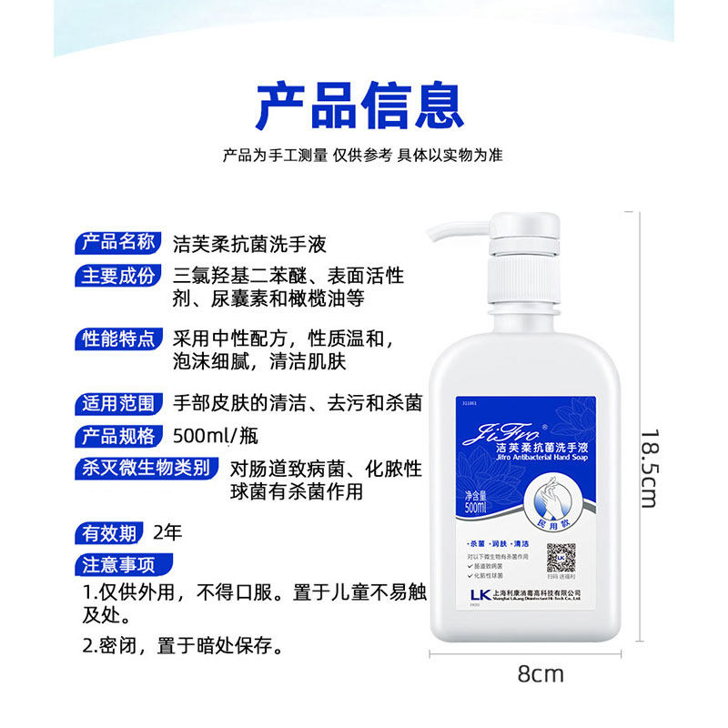 Jiefurou antibacterial hand sanitizer 500ml sterilization mild cleaning decontamination medical grade medical household Shanghai Likang