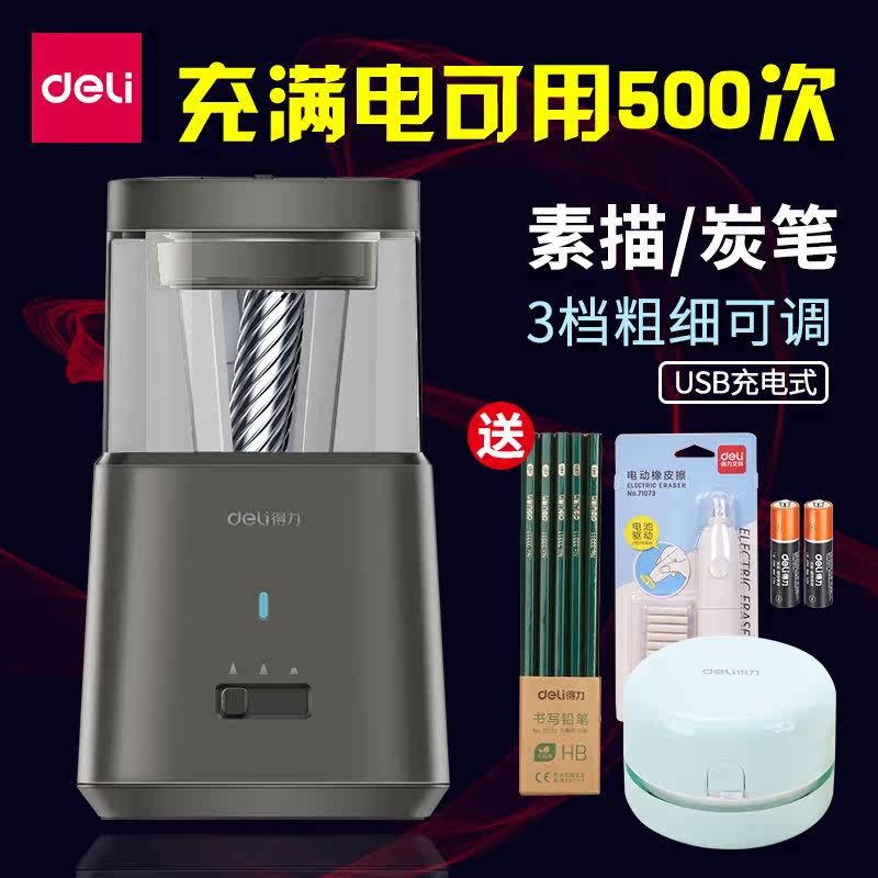 Deli electric sharpener pencil sharpener pencil cutter student with rotary pen knife fully automatic multi-functional sketch art with pencil knife children's primary school shaver machine grinding pen knife school supplies stationery set