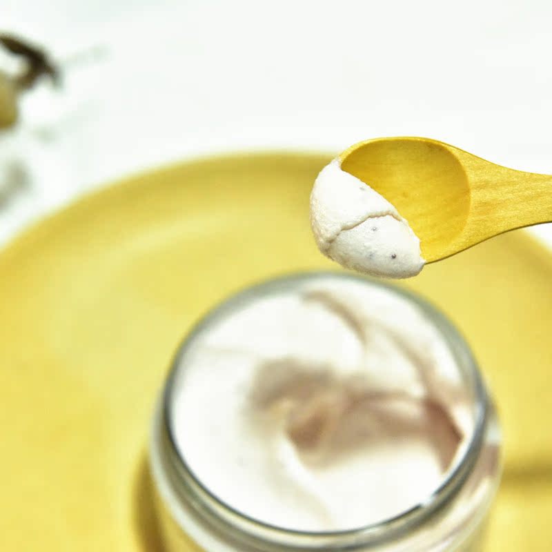 Pomegranate seeds and suckling fruit flavoured ice cream body frosted paste