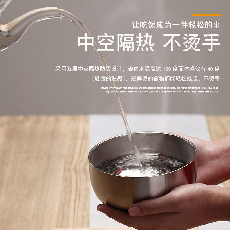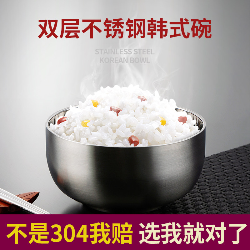 304 Stainless Steel Bowl Home Adult Rice Double Layer Anti-Burn Children Bowl Students Big Cafeteria Dining Bowl single