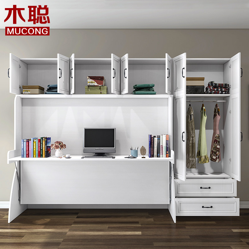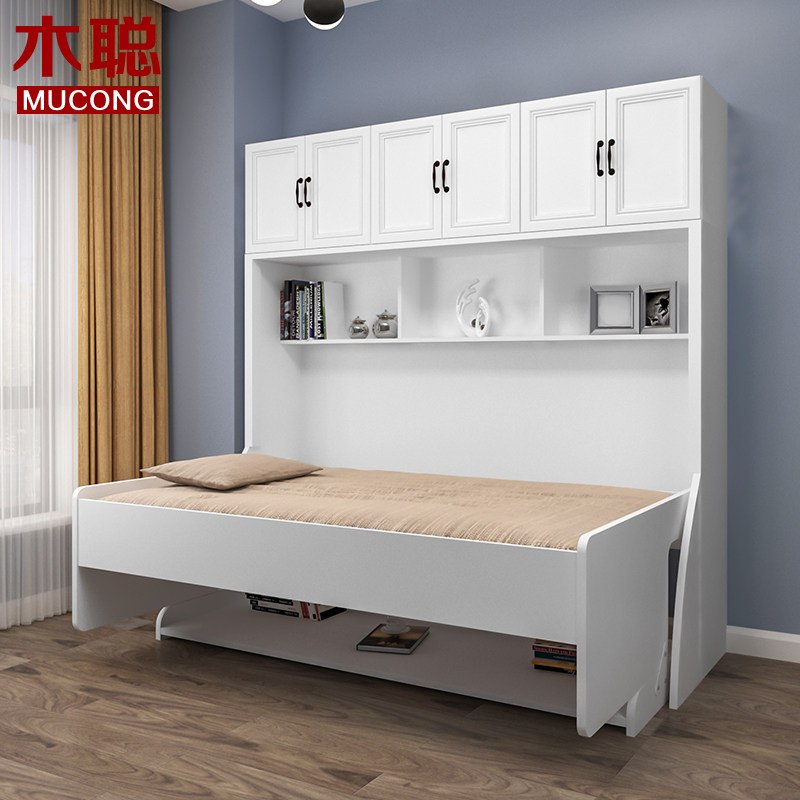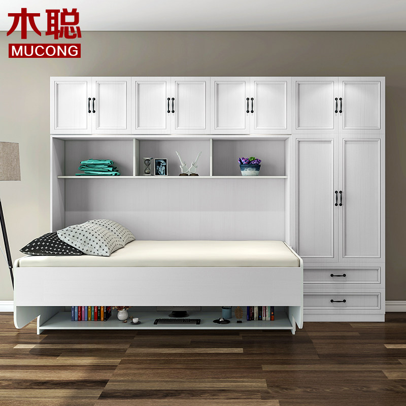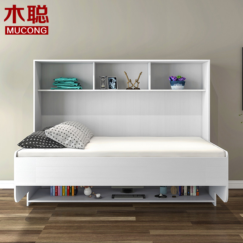 Mu Cong simple piano Invisible bed Single bed Multi-function bookshelf bed Folding bed Wall bed Bookcase Desk One-piece bed