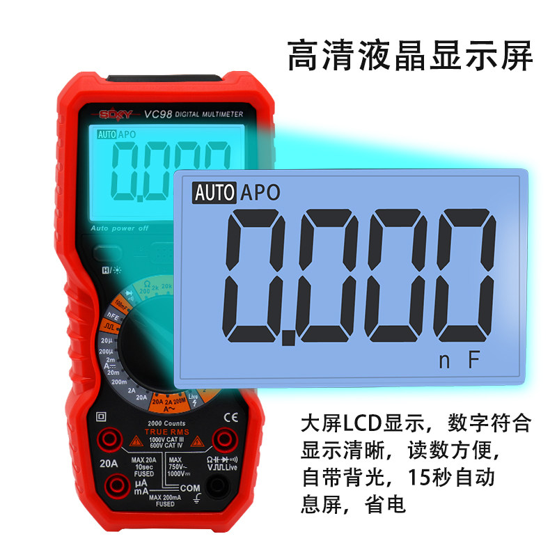 Snake VC98 high-precision digital multimeter fully automatic multi-function repair electrician anti-burning universal meter capacitor