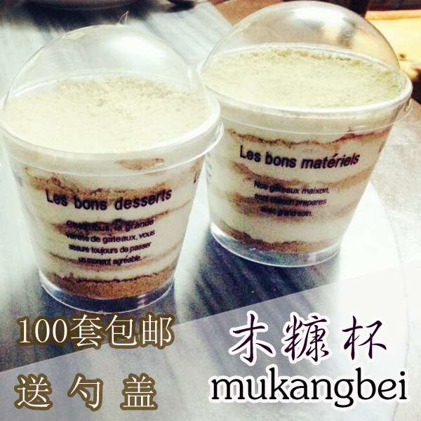 200ML disposable wood bran cup mousse cup dessert pudding cup tiramisu cake with lid and spoon plastic cup