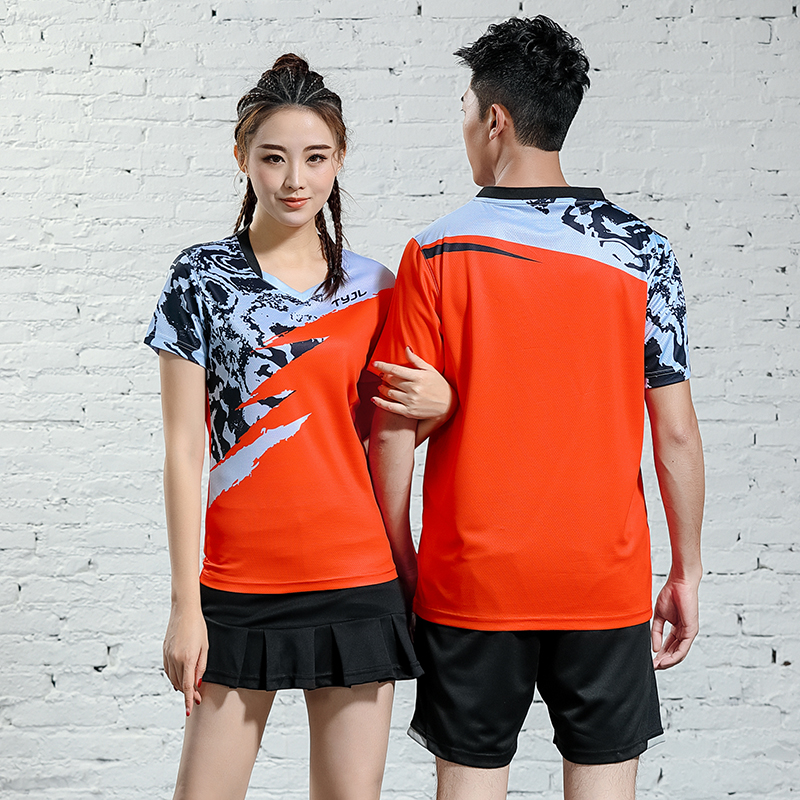 women's thin breathable short sleeve volleyball suit fast dry badminton table tennis uniform men's training match suit orange