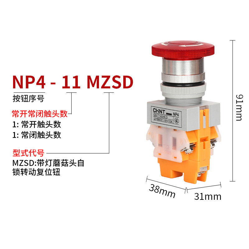 Chint with light emergency stop button NP4-11MZSD LED Red Green emergency stop switch 1 open 1 closed