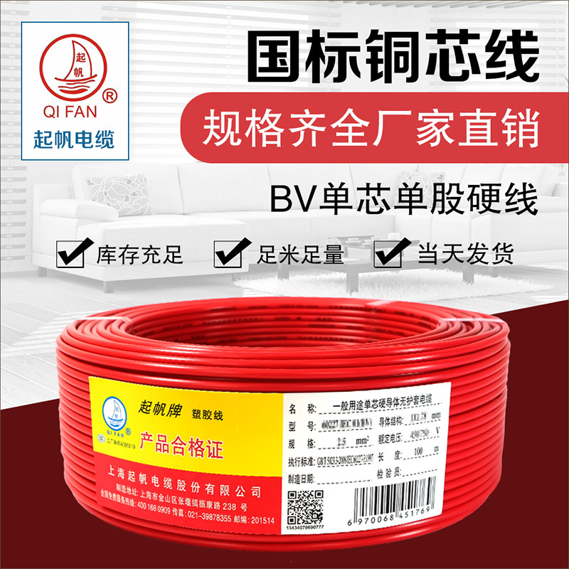 Sail wire and cable BV1 5 2 5 4 6 square copper core single-strand hard wire household wire air conditioner 100 meters