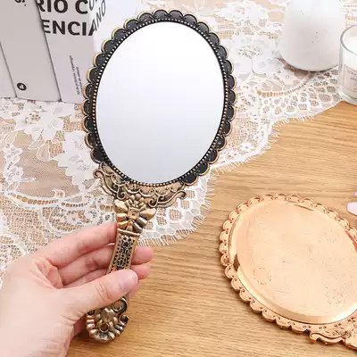 Creative retro pattern handle makeup mirror makeup mirror portable lace mirror hand holding mirror