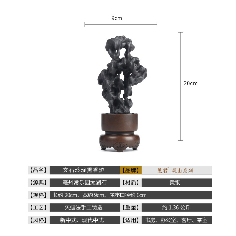 See Jun Aragonite exquisite brass incense burner ring incense burner Copper incense burner ornaments Creative gifts Taihu Stone artwork