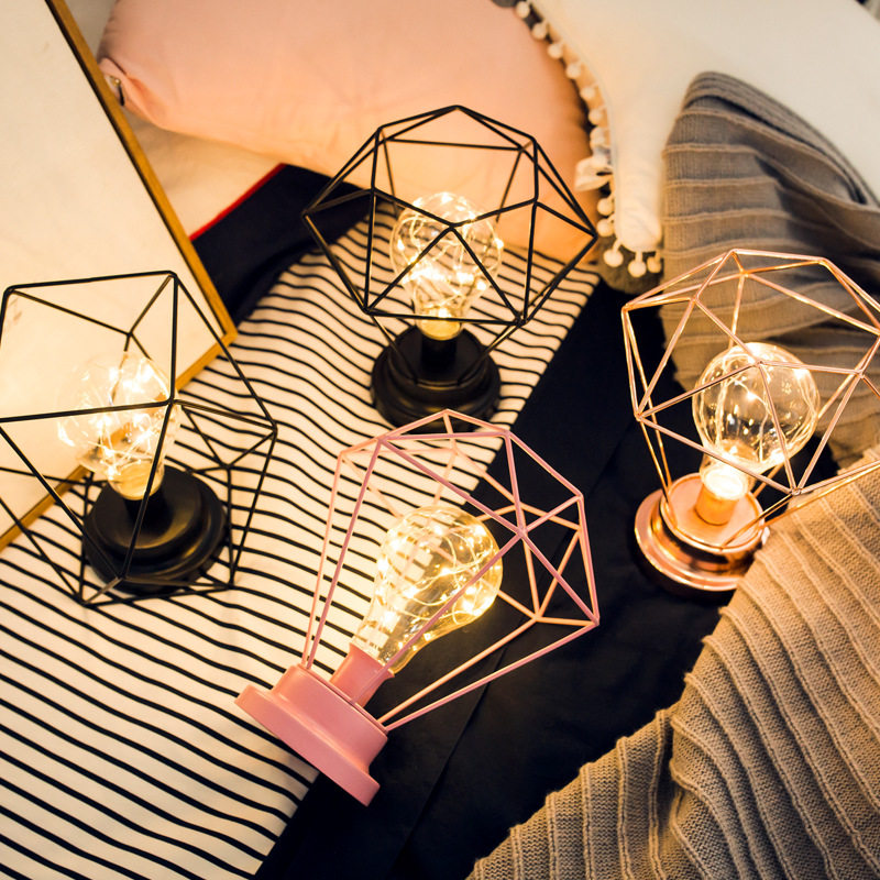 Nordic style wrought iron diamond light bulb night light ins creative fashion home accessories decoration bedroom bedside table lamp