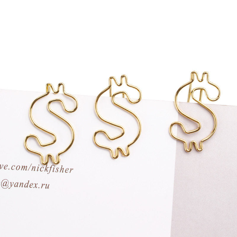 Creative bright color dollar paper clip cartoon office supplies pin dollar pin bookmark creative shape paper clip