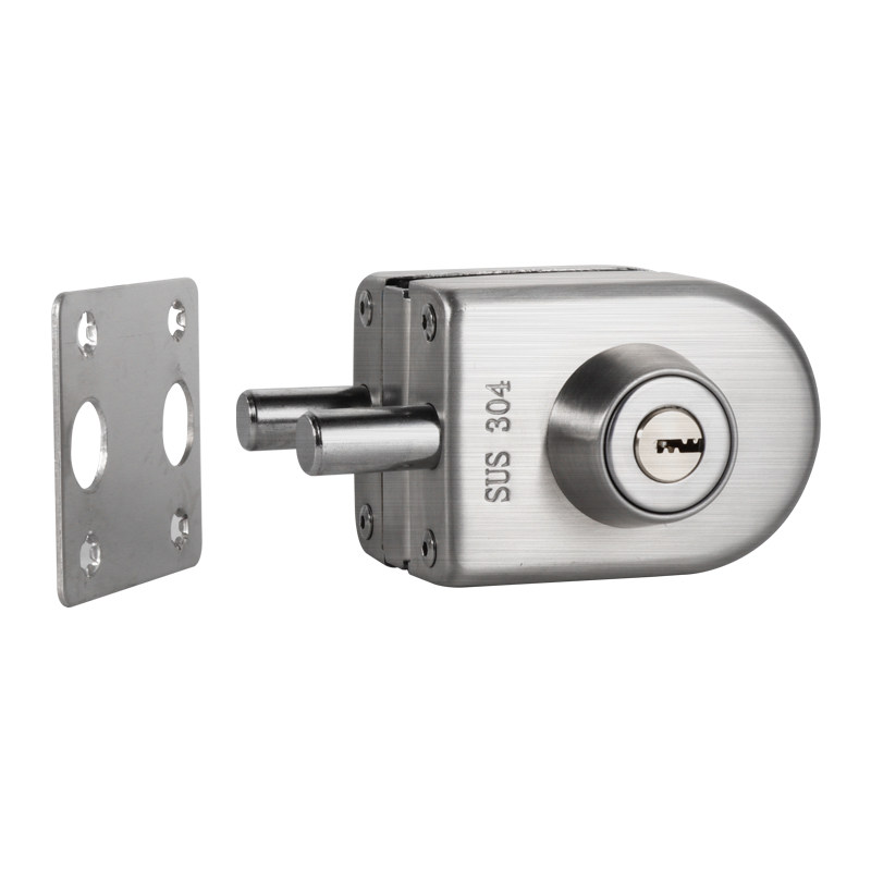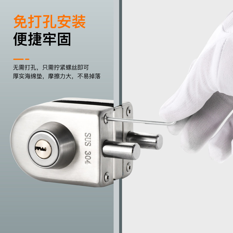Frameless glass door lock sliding glass lock double door no hole stainless steel latch office central glass lock